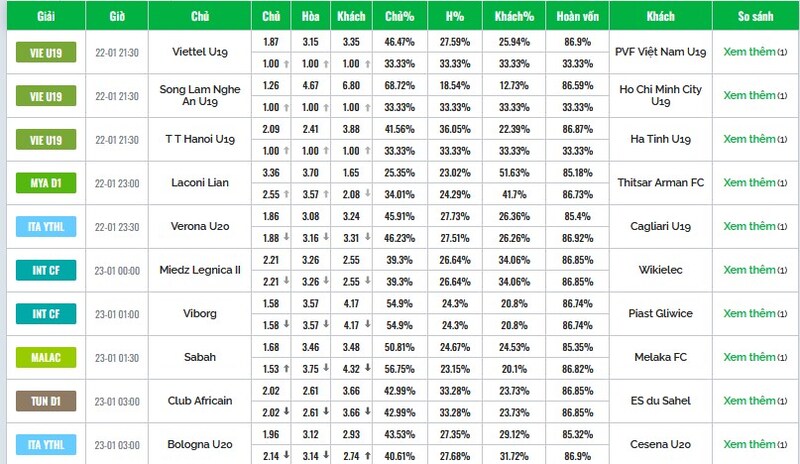 Ty le keo trước, trong và sau trận cực kỳ đầy đủ trên bongdaso