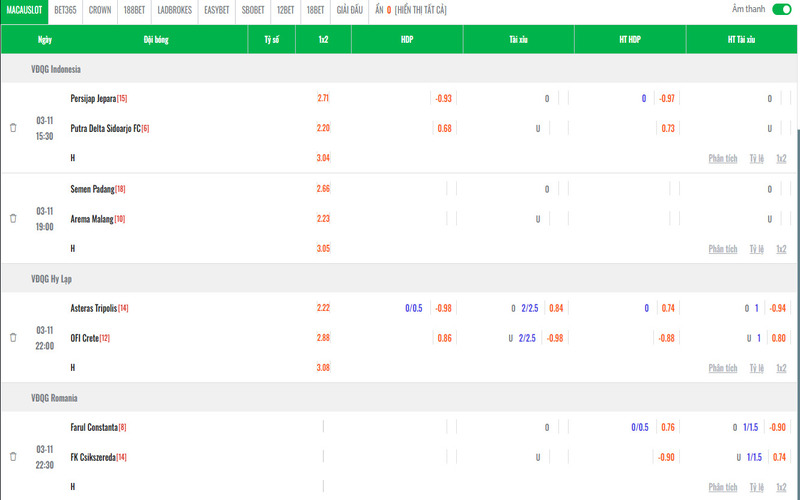 Tỷ lệ kèo được cập nhật nhanh chóng và chính xác tuyệt đối